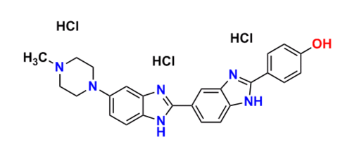 Hoechst 33258細(xì)胞核染料是一系列熒光染料,用于在熒光顯微鏡中標(biāo)記DNA。它們也常用于可視化細(xì)胞核和線粒體的染色。科研中通常使用的兩種分別為:Hoechst 33258和Hoechst 33342。 兩種染料都被約350nm的紫外光激發(fā),并且都發(fā)射藍(lán)/青色熒光,發(fā)射最大值為461nm。 Hoechst染色劑可以與活細(xì)胞或固定細(xì)胞一起使用,并且通常用作另一種核酸染色劑DAPI的替代物。 它們之間的關(guān)鍵區(qū)別在于Hoechst 33342的額外乙基使其更具親脂性,因此更容易穿過(guò)完整的細(xì)胞膜。在某些應(yīng)用中,Hoechst 33258的滲透性明顯低于Hoeschst 33342。這些染料也可用于通過(guò)繪制標(biāo)準(zhǔn)的發(fā)射 - 含量曲線來(lái)檢測(cè)樣品的DNA的含量。
