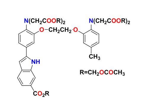 Indo-1是一種細胞生物學常用的鈣離子熒光探針,Indo-1能特異性地結合Ca2+,同時可發(fā)出熒光,Indo-1是極性大的酸性化合物,無法進入細胞內,使其成為Indo-1/AM,該變化既增加了酯溶性又消除了負電荷,極大的提高了細胞滲透性。